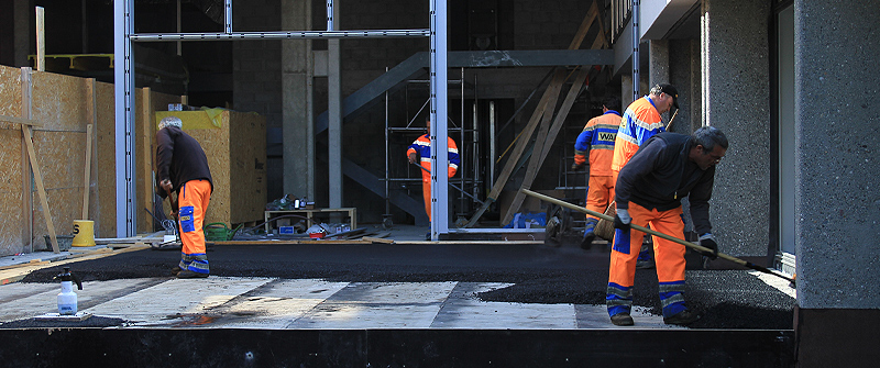 Toiture praticable avec système d’étanchéité particulièrement étudié pour recevoir une protection lourde telle que Béton bitumineux ou pavage. Dans certains cas, une isolation thermique peut être incorporée au système d'étanchéité. Cependant le choix de l'isolant et les précautions de mise en œuvre, sont des points importants à contrôler. |